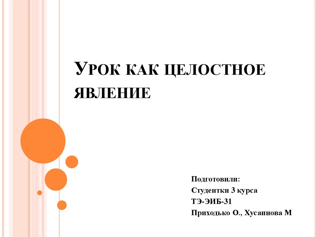 УРОК КАК ЦЕЛОСТНОЕЯВЛЕНИЕ