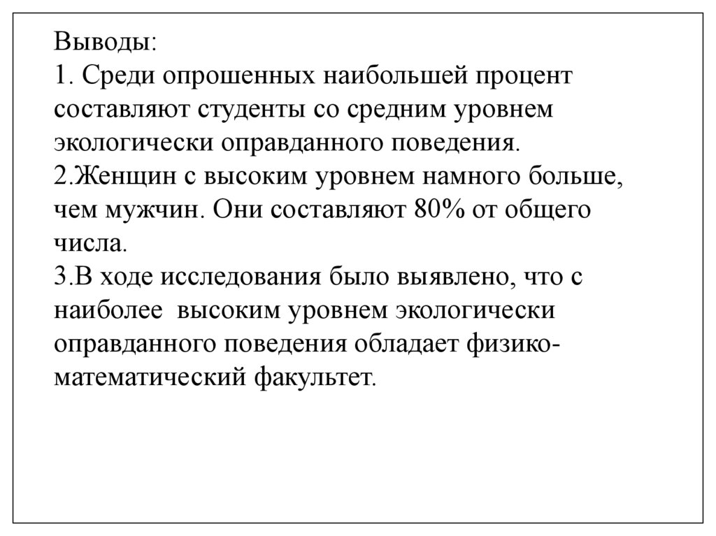 Цель: выявить уровень сформированности экологически оправданногоповедения.
