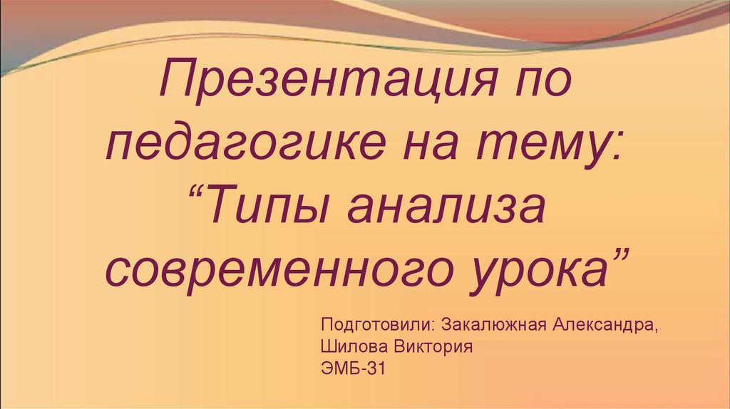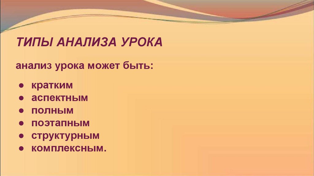 ТИПЫ АНАЛИЗА УРОКАанализ урока может быть: