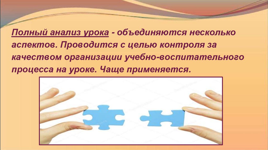 Полный анализ урока - объединяются несколькоаспектов. Проводится с целью контроля за