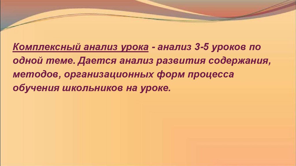 Комплексный анализ урока - анализ 3-5 уроков поодной теме. Дается анализ развития содержания,