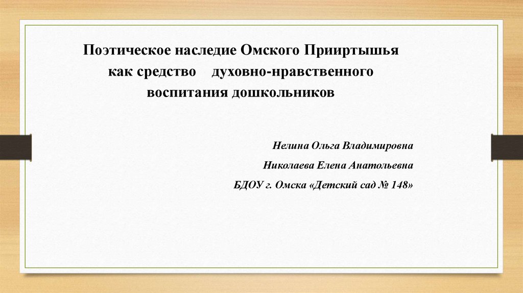 Поэтическое наследие Омского Прииртышья как средство духовно-нравственного воспитания дошкольников