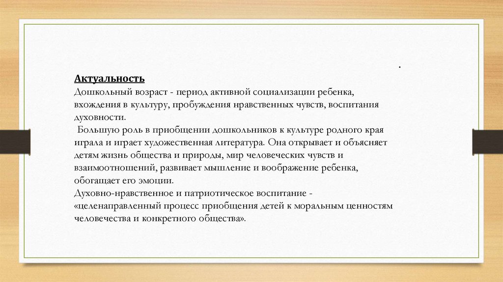 Духовно-нравственное и патриотическое воспитание «целенаправленный процесс приобщения детей к моральным ценностям
