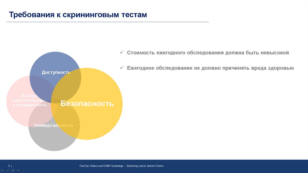 Требования к скрининговым тестамСтоимость ежегодного обследования должна быть невысокой