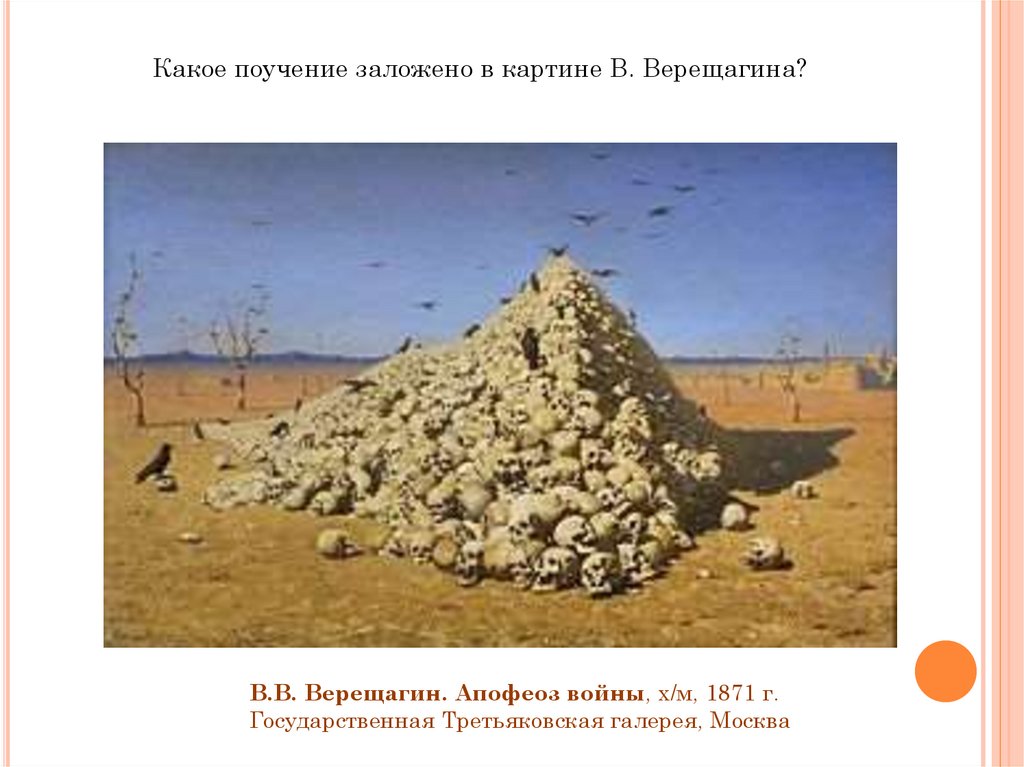 Какое поучение заложено в картине В. Верещагина?В.В. Верещагин. Апофеоз войны, х/м, 1871 г.