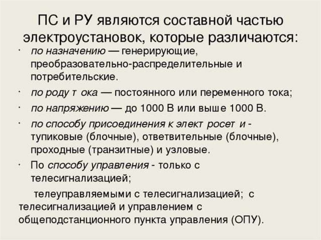 Классификация подстанций
