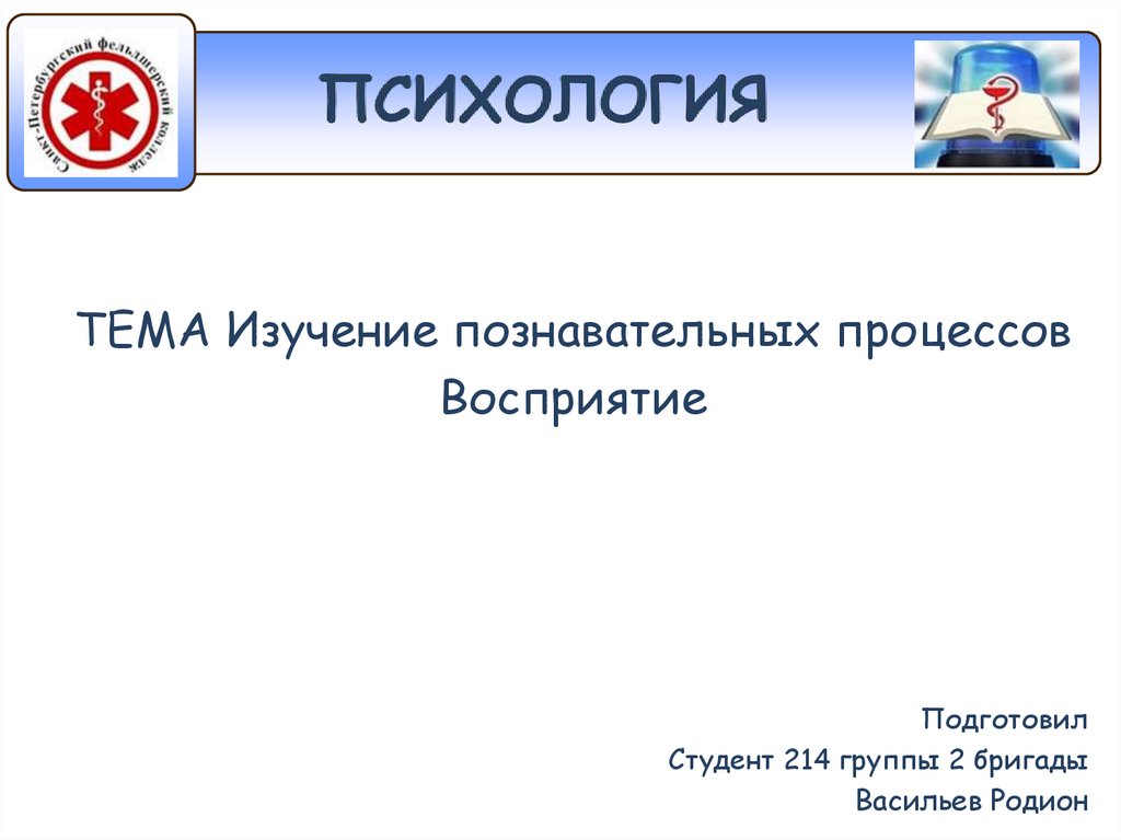 Восприятие – это отраженные в коре головногомозга предметы и явления окружающего мира,