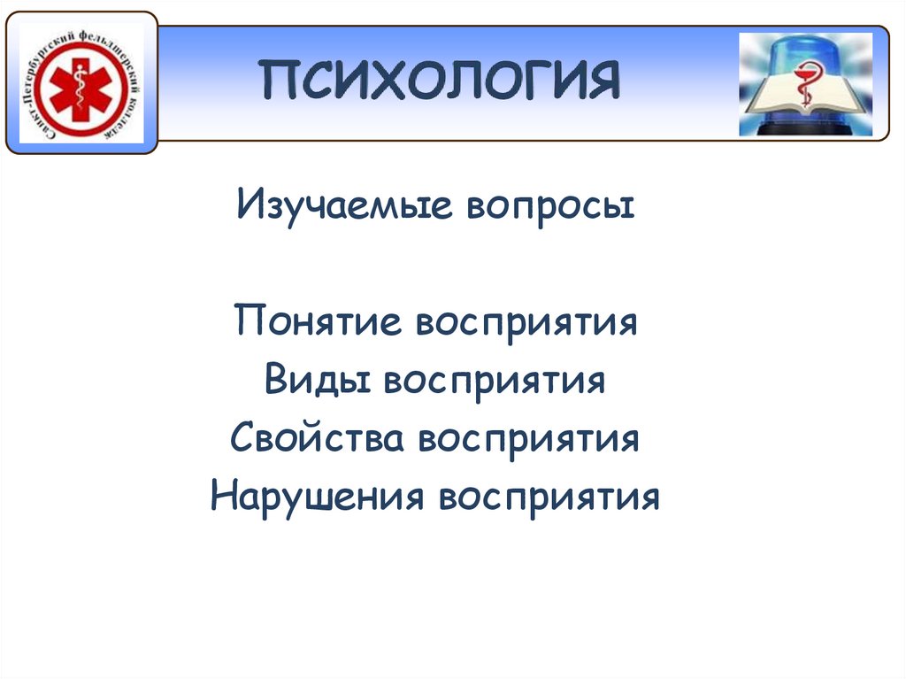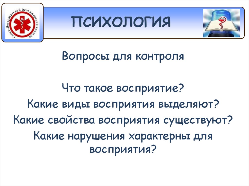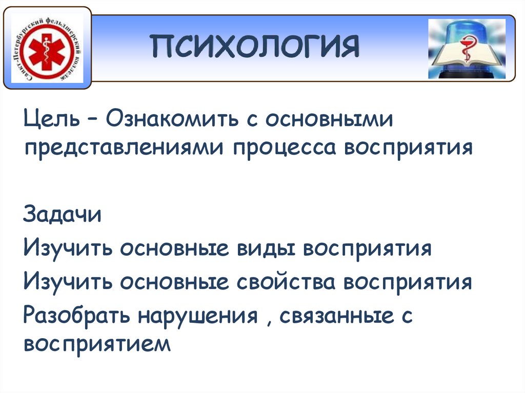 Цель – Ознакомить с основнымипредставлениями процесса восприятия