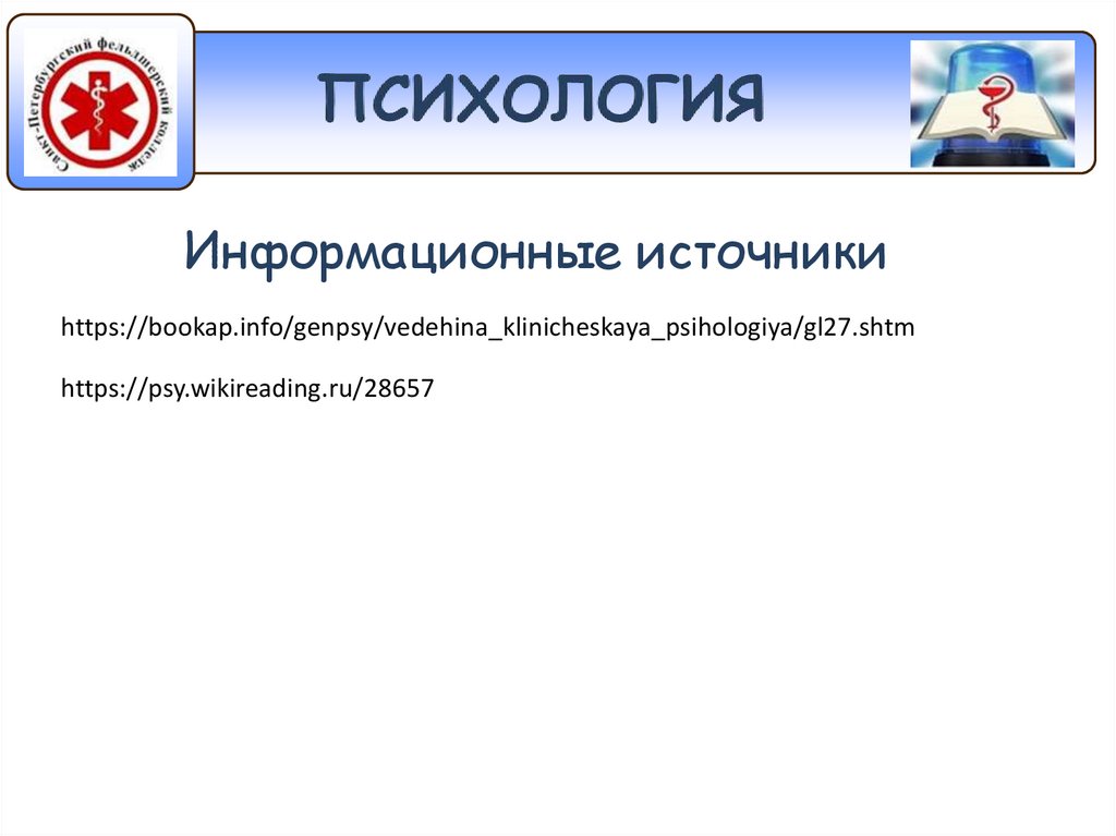 Информационные источникиhttps://bookap.info/genpsy/vedehina_klinicheskaya_psihologiya/gl27.shtm