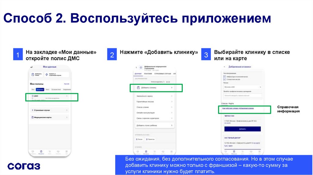 1. Если вы не нашли свою любимую клинику в программе, есть два способа добавить её