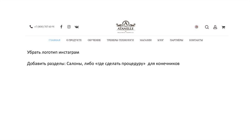 Убрать логотип инстаграмДобавить разделы: Салоны, либо «где сделать процедуру» для конечников