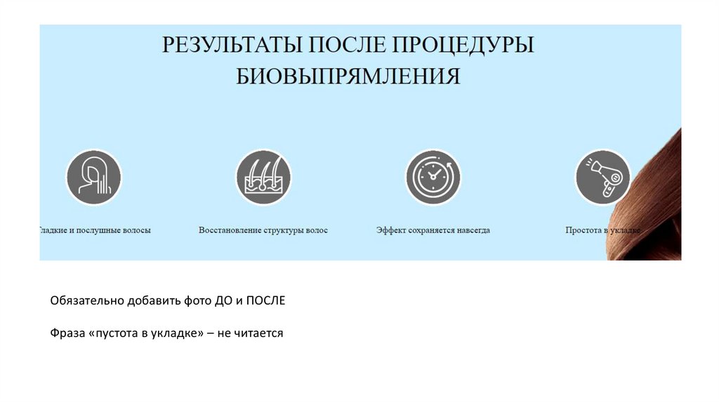 Обязательно добавить фото ДО и ПОСЛЕФраза «пустота в укладке» – не читается