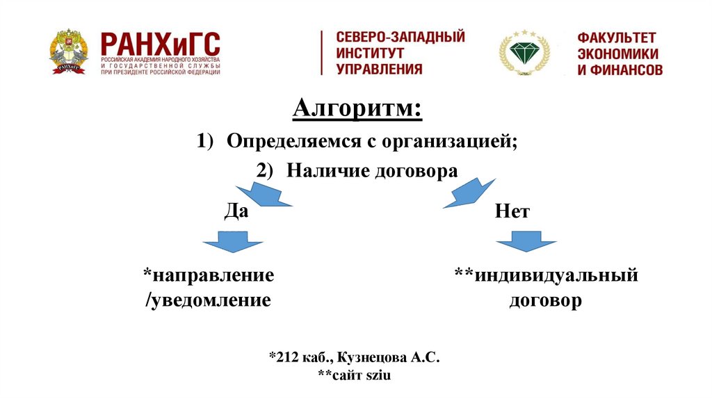 Алгоритм:1) Определяемся с организацией;