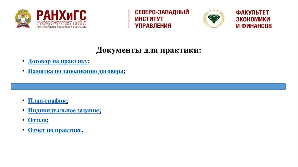 Документы для практики:• Договор на практику;