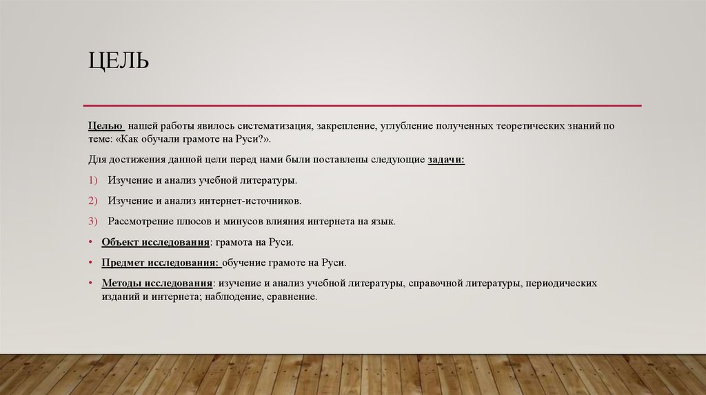 • Предмет исследования: обучение грамоте на Руси.