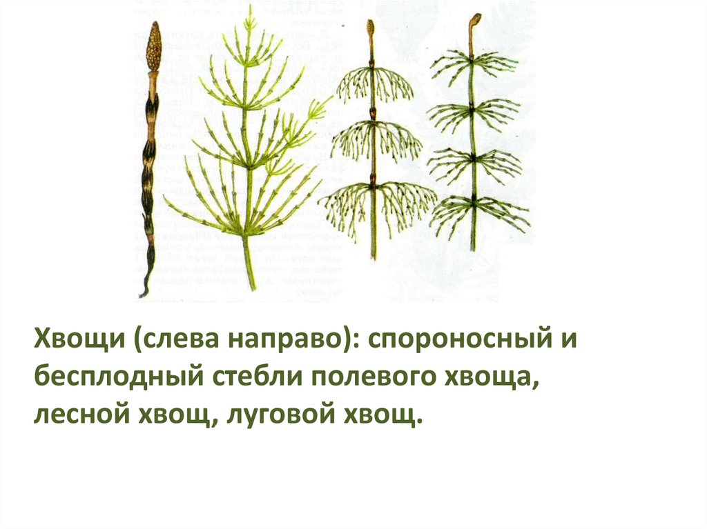 лесной хвощ, луговой хвощ.