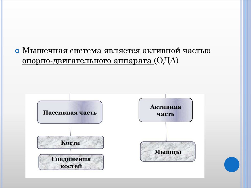 Мышечная система является активной частьюопорно-двигательного аппарата (ОДА)