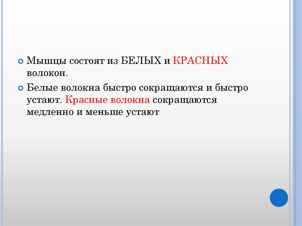Мышцы состоят из БЕЛЫХ и КРАСНЫХволокон.