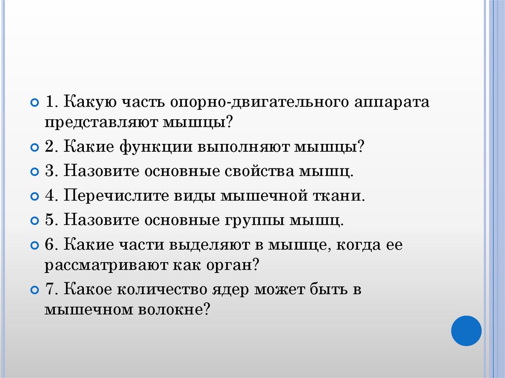 1. Какую часть опорно-двигательного аппаратапредставляют мышцы?