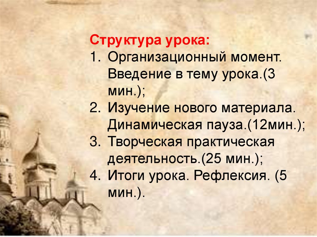 Урок ИЗО в 4 классе о теме«Древние соборы»