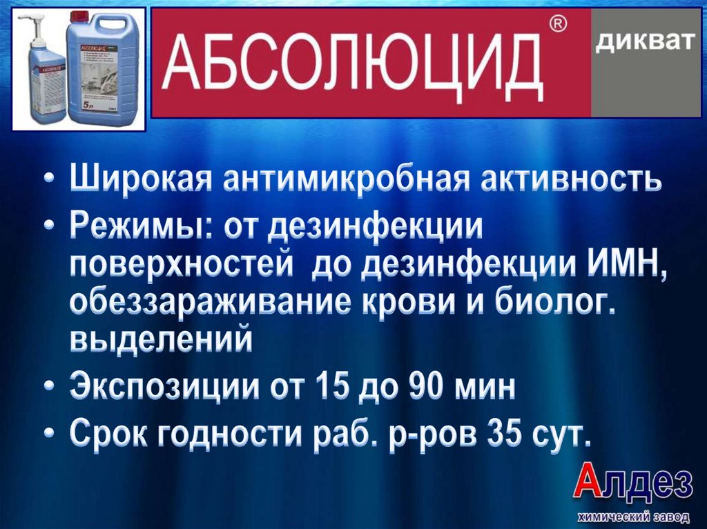 Дезинфектанты производства ООО «Химзавод АЛ-ДЕЗ»