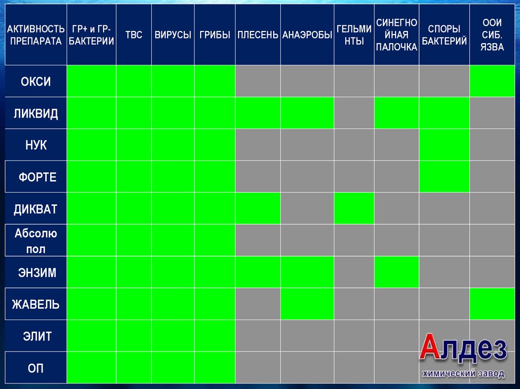 2. Дезинфектанты производства ООО «Химзавод АЛ-ДЕЗ» активны в отношении: