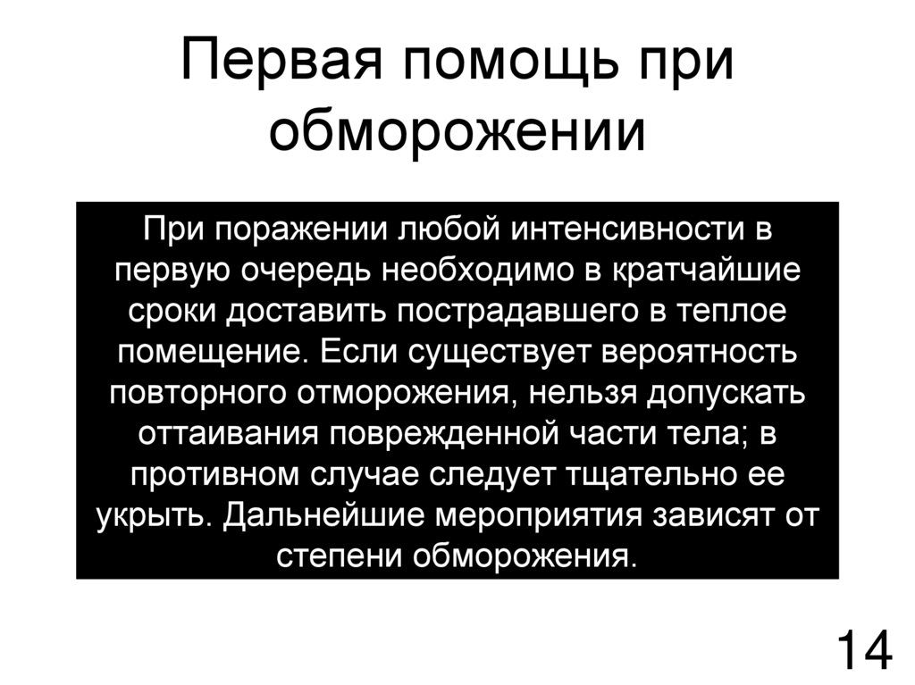 Первая помощь приобморожении