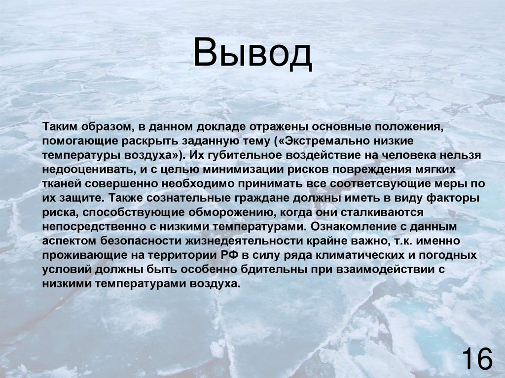 непосредственно с низкими температурами. Ознакомление с данным