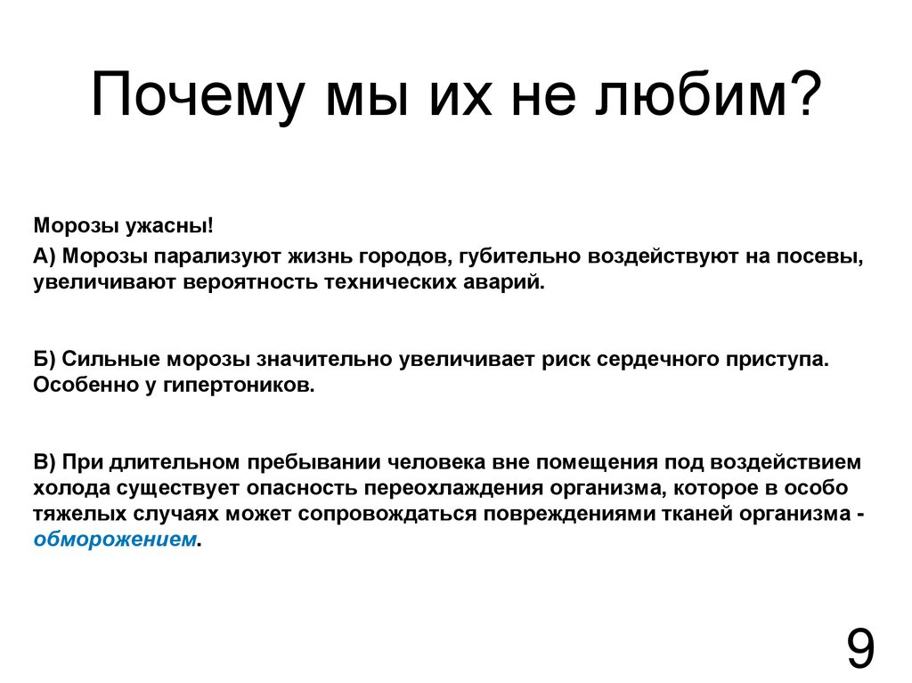 Почему мы их не любим?Морозы ужасны!