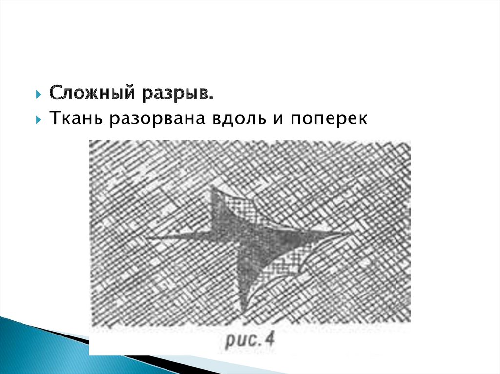 Сложный разрыв.Ткань разорвана вдоль и поперек