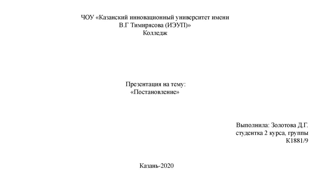 ЧОУ «Казанский инновационный университет имениВ.Г Тимирясова (ИЭУП)»