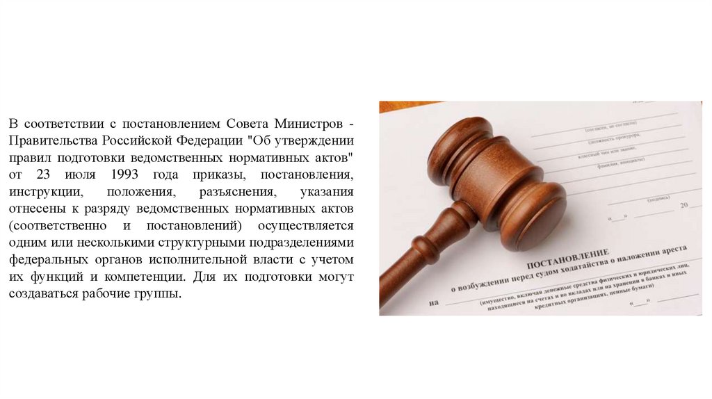 В соответствии с постановлением Совета Министров Правительства Российской Федерации "Об утвержденииправил подготовки ведомственных нормативных актов"