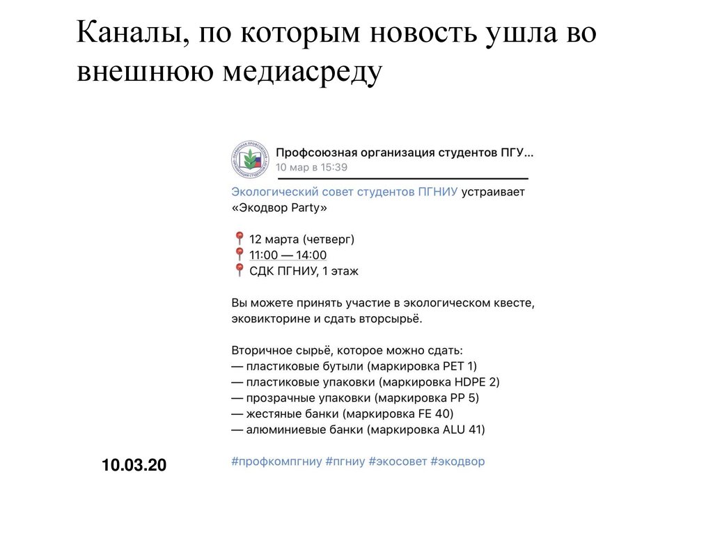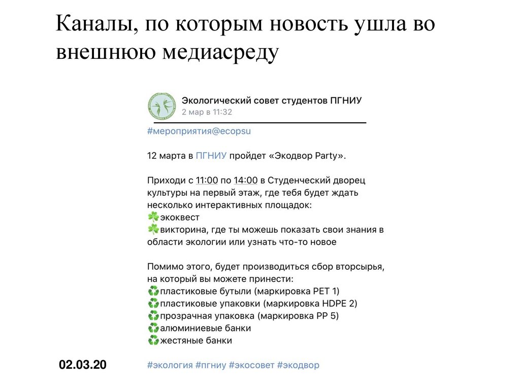 Каналы, по которым новость ушла вовнешнюю медиасреду