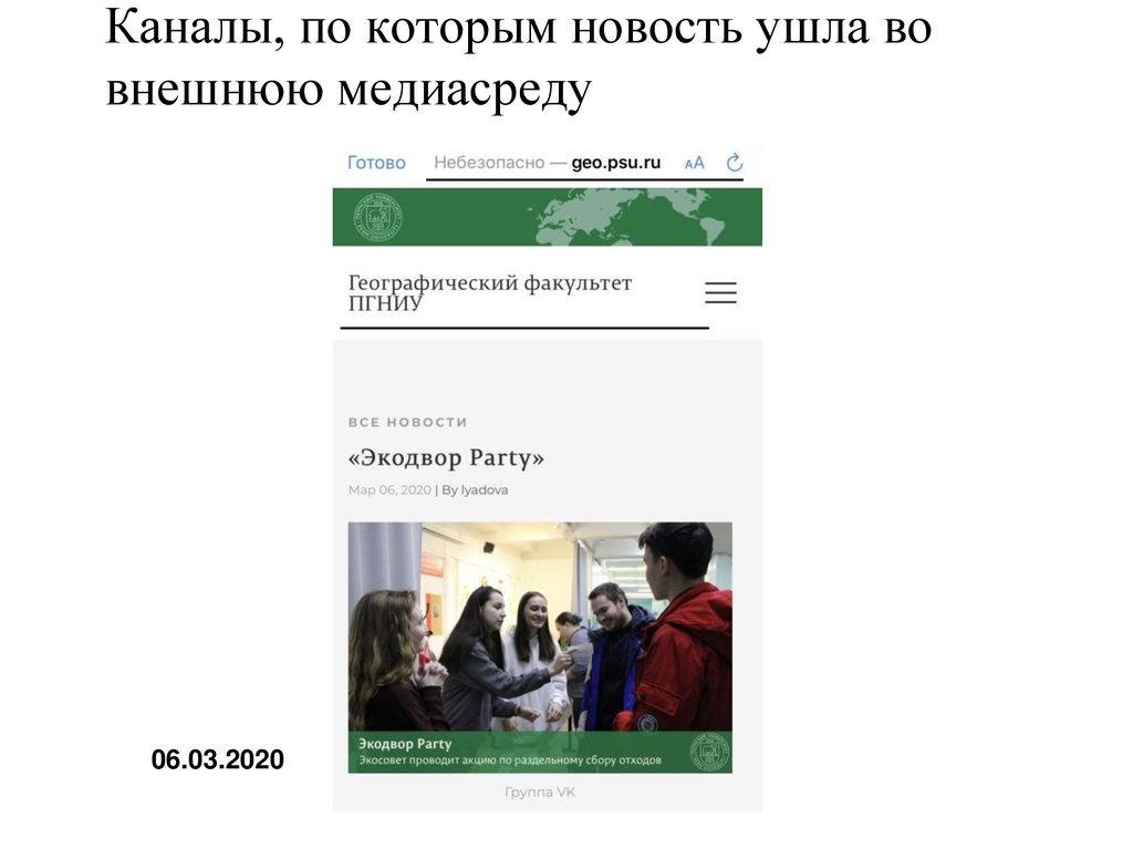 Обращение в различные СМИ ПГНИУ: группы