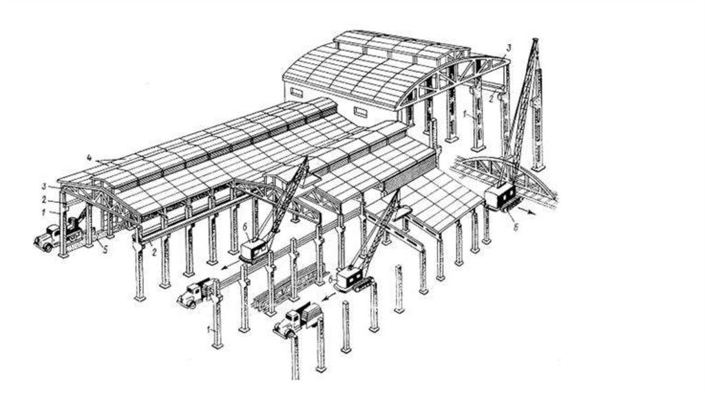 Конвеерная сборка и крупноблочный монтаж конструкций покрытий промзданий