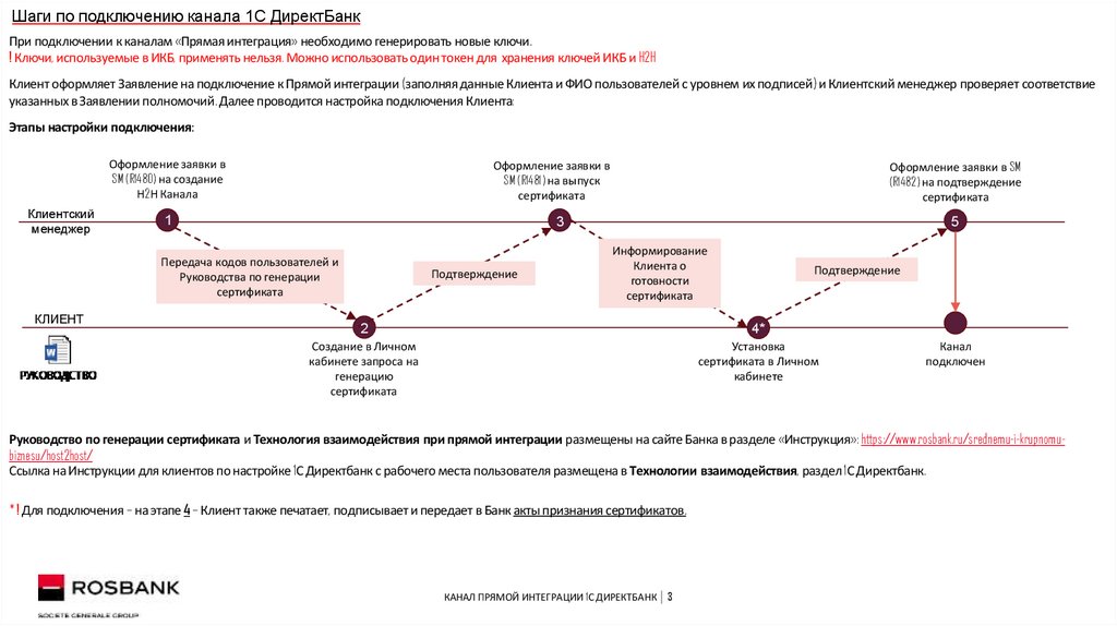 Руководство по генерации сертификата и Технология взаимодействия при прямой интеграции размещены на сайте Банка в разделе «Инструкция»: https://www.rosbank.ru/srednemu-i-krupnomubiznesu/host2host/