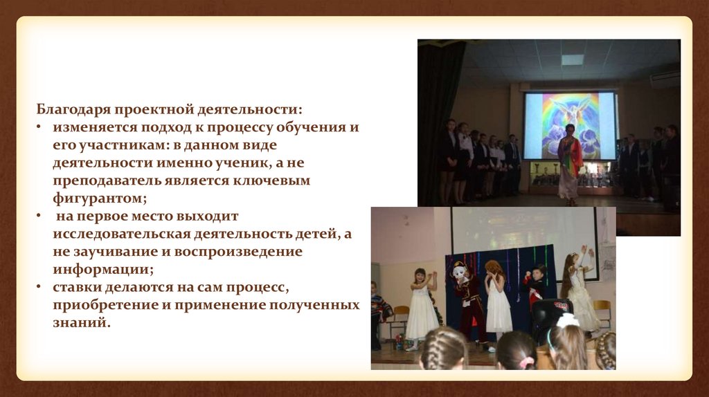 Благодаря проектной деятельности:• изменяется подход к процессу обучения и