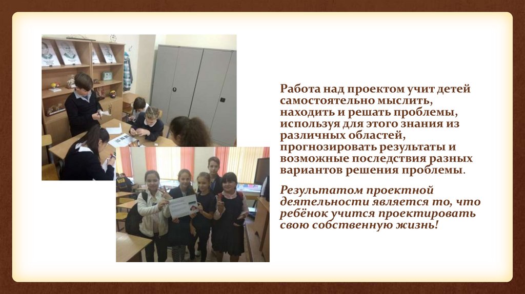 Работа над проектом учит детейсамостоятельно мыслить,
