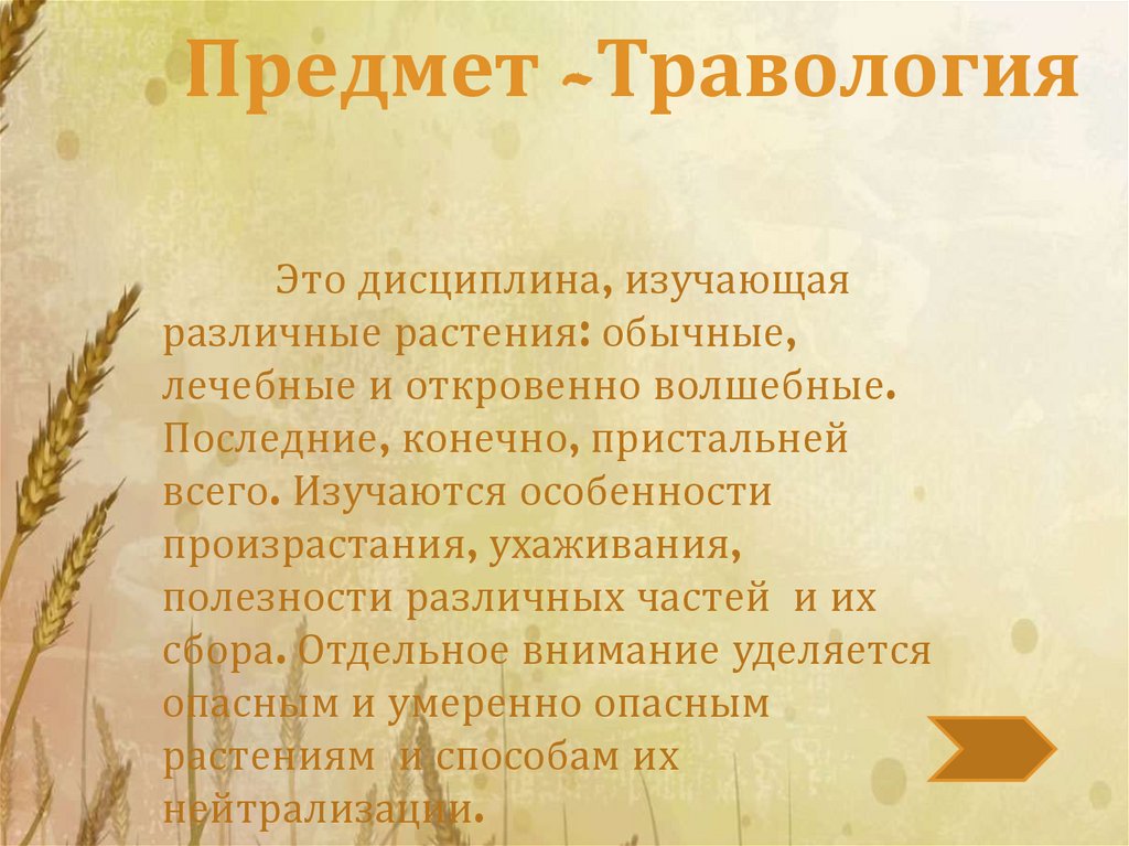 Предмет -ТравологияЭто дисциплина, изучающая