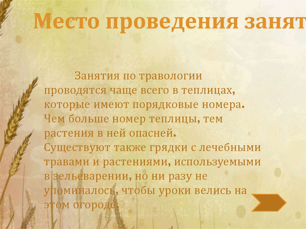 Место проведения занятЗанятия по травологии