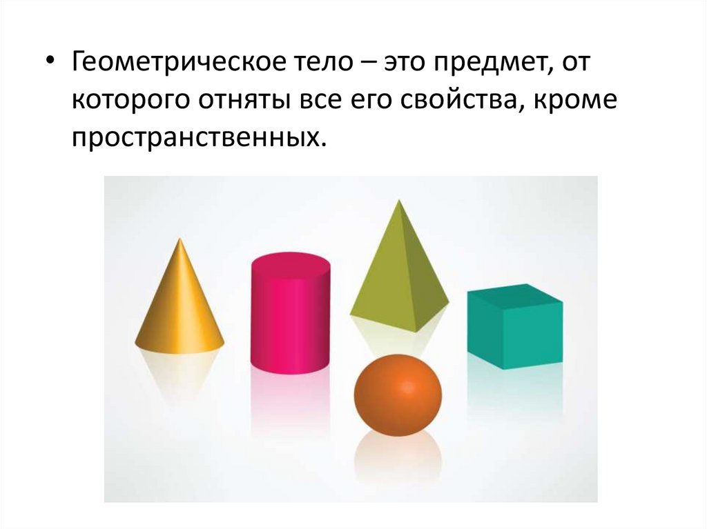 • Геометрическое тело – это предмет, откоторого отняты все его свойства, кроме