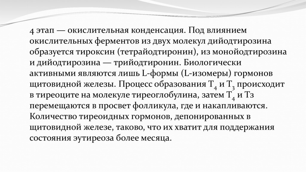 4 этап — окислительная конденсация. Под влияниемокислительных ферментов из двух молекул дийодтирозина