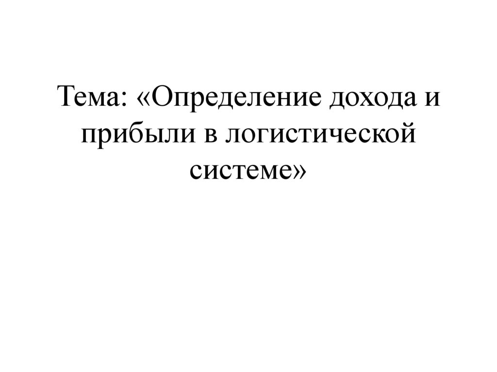 1. Тема: «Определение дохода и прибыли в логистической системе»