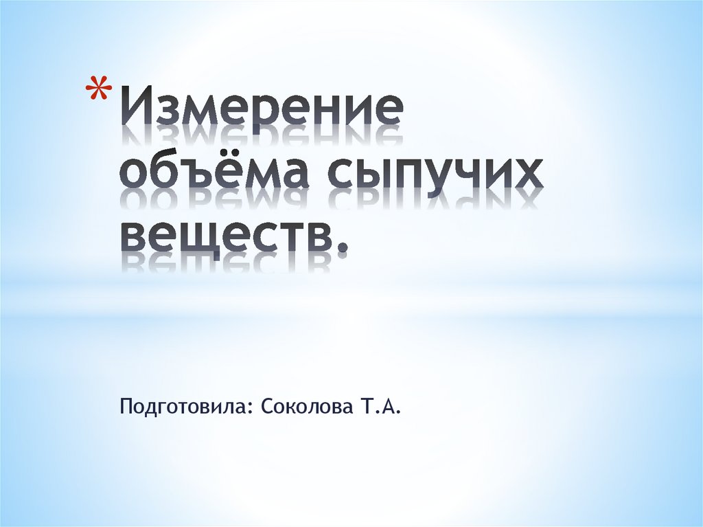 Измерение объема жидких и сыпучих веществ с помощью условной меры масс