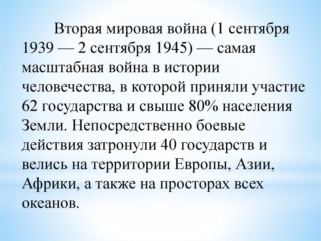 Вторая мировая война (1 сентября1939 — 2 сентября 1945) — самая