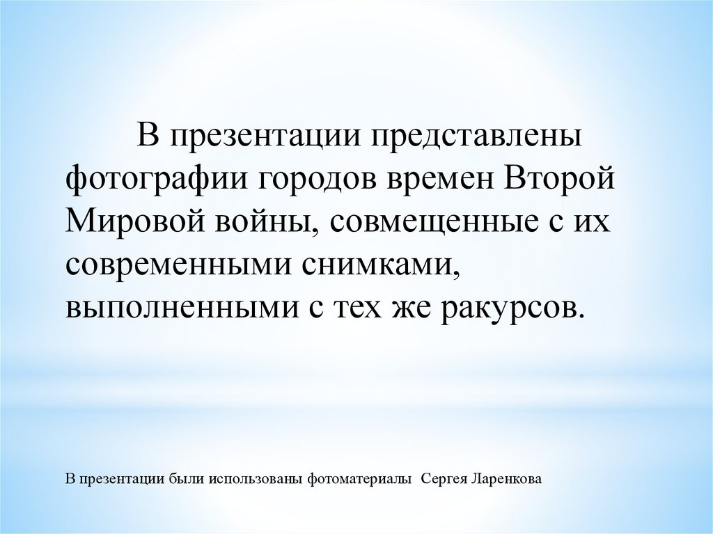 В презентации представленыфотографии городов времен Второй