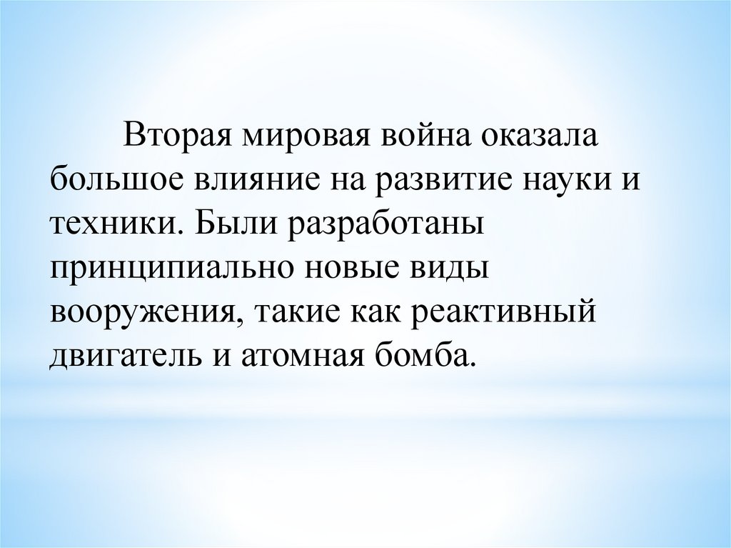 Вторая мировая война оказалабольшое влияние на развитие науки и