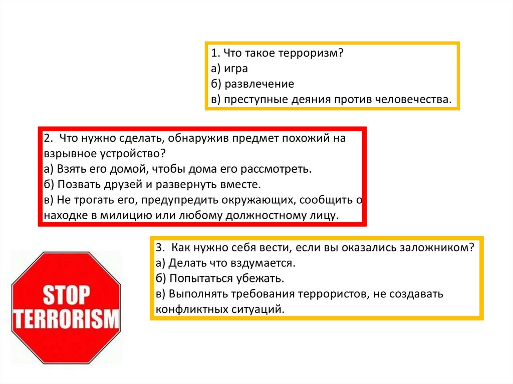 1. Что такое терроризм?а) игра