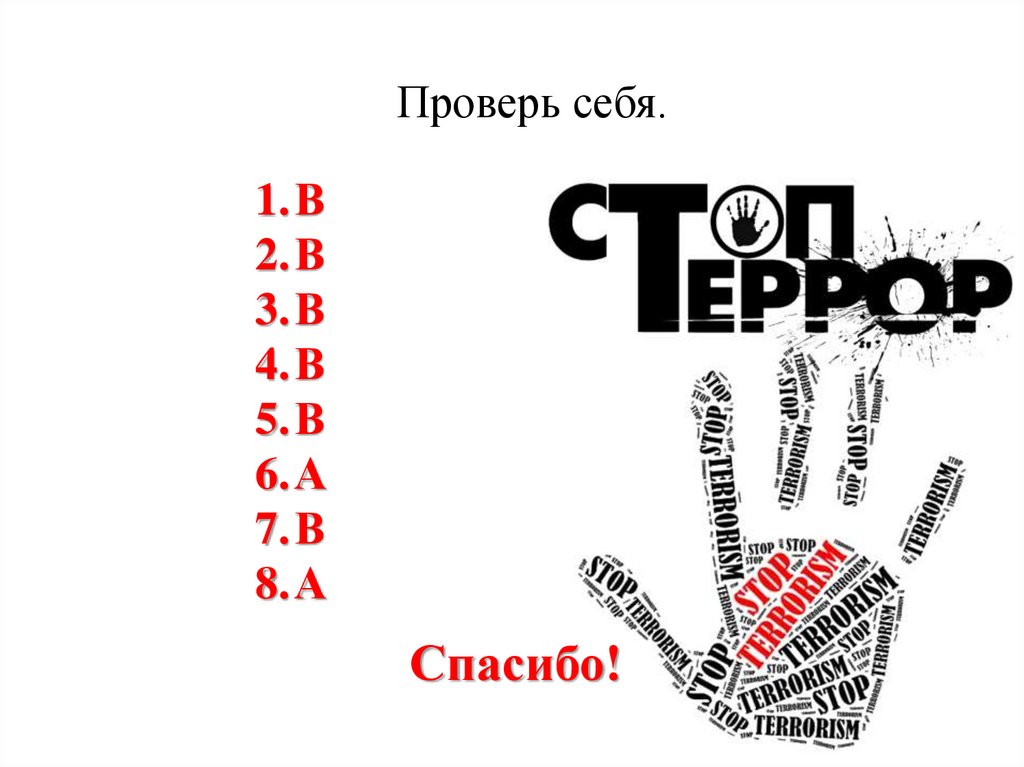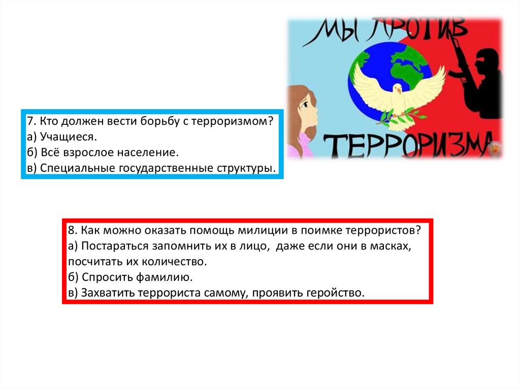 7. Кто должен вести борьбу с терроризмом?а) Учащиеся.