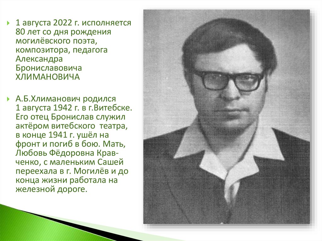К 80-летию со дня рожденияАлександра ХЛИМАНОВИЧА
